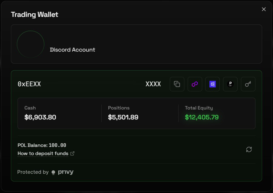 Click the wallet button next to your username to open the Trading Wallet panel.